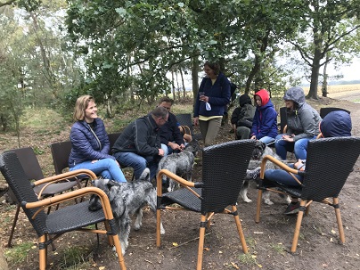 Wat hebben we weer genoten van onze jaarlijkse Oldertjesdag. Dit jaar met de nestjes van Penny Y nest, Xandera Z nest en Wietske de A nest. Van een kleine pup naar een volwassen middenslag schnauzer. En ook weer allemaal verschillend. Ik denk voor onze gasten ook erg leuk om de verhalen te horen van broertje/zusje van hun schnauzer. Wel elk jaar weer jammer door de drukte dat we maar eventjes met iedereen persoonlijk een praatje kunnen maken. Dit jaar hadden we een foto wanndeltocht uit gezet. jammer van het regenbuitje onderweg. Maar al bij al viel het wel mee met het weer. De fototocht bleek moeilijker als verwacht. Houden we de volgende keer rekening mee. Ook hebben een paar groepen wat kilometers meer gelopen omdat ze de weg kwijt waren. Maar gelukkig kwam iedereen uiteindelijk bij de rustpauze weer uit. We willen graag Gerrit weer bedanken voor het mee helpen om de tocht uit te zetten. Willemien voor het helpen de hele dag, Bianca voor de heerlijk eigen gebakken cake. En natuurlijk Matjeu en Chantal voor het heerlijke eten.Het smaakte voortreffelijk. Ook onze gasten met al die Oldertjes schnauzers hartelijk bedankt dat jullie er waren. Het was top!!! . Onder de foto`s van De oldertjesdag 2019 is het verhaal van Silvia te lezen over haar ervaringen van deze dag. Bedankt hiervoor.